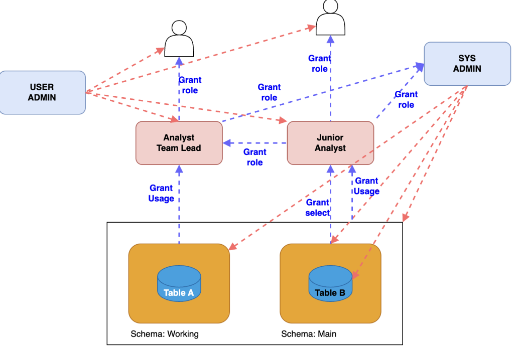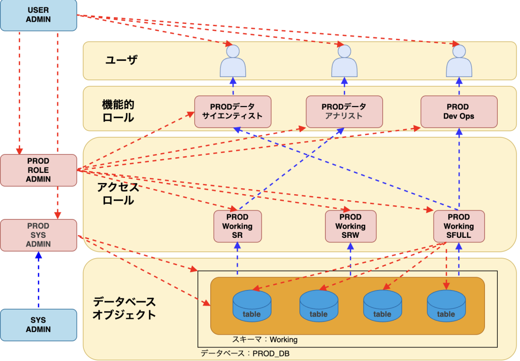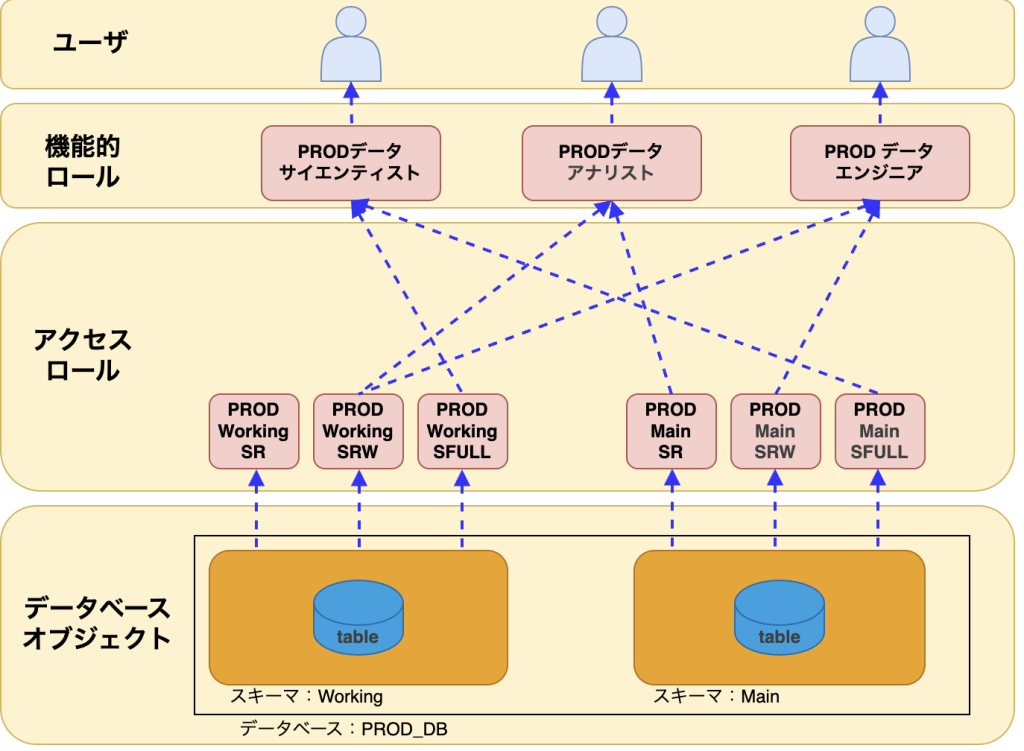 目的に合わせて、機能別ロールとアクセスロールを組み合わせるだけです。ただし、ユーザやオブジェクト、アクセスロールの権限パターンが増えるたびにそれらを作成する手間が増えるため、ユーザ以外はTerraformでコード管理することを推奨します。