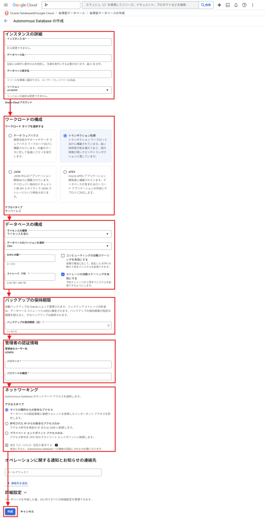Oracle Database@Google Cloudをマーケットプレイスから有効化し、手動でAutonomous Database Transaction Processingのインスタンスを作成する方法を説明します。