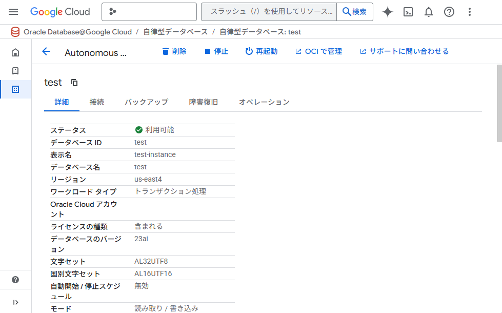 この記事ではOracle Database@Google Cloudをプロビジョニングし、各種設定画面を確認する方法を紹介しました。