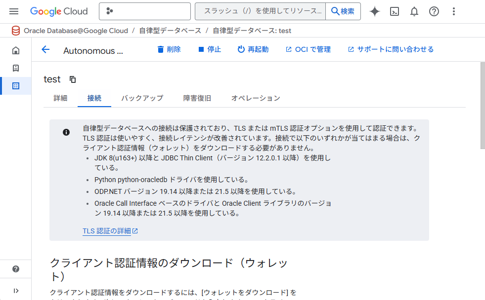 - Oracle Cloud側のAutonomous Database管理画面に繊維するため、より詳細な設定やモニタリング情報の確認をすることができる