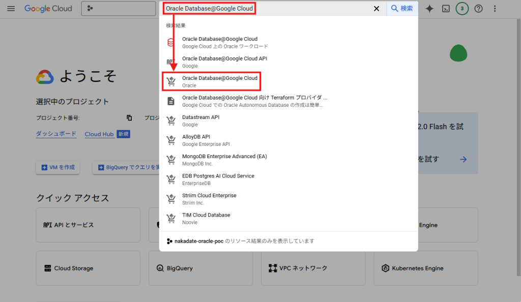 Oracle Database@Google Cloudを入力し、検索結果からマーケットプレイスを押下する。