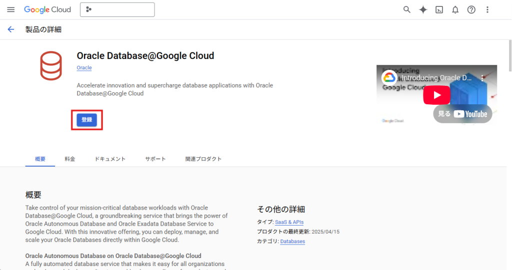 1. Google CloudのOracle Database@Google Cloudの管理画面に移動する