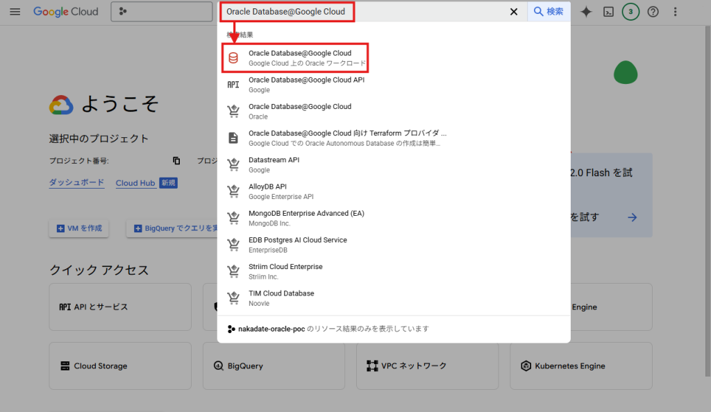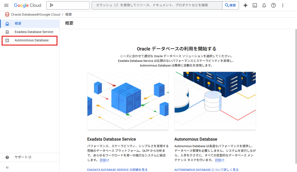 - Google CloudのOracle Database@Google Cloudの管理画面に移動する