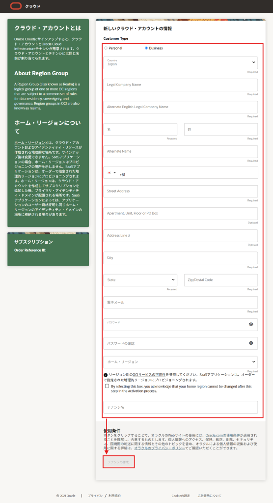 - Oracle Cloud Infrastructureのアカウントを作成する