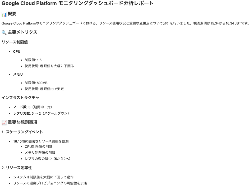今回の検証ではGoogleCloudのダッシュボードを利用しましたが、画像が取得できればツールは問わないものなので、DataDogやGrafanaのダッシュボードやGoogleの障害情報、または使用しているソフトウェアの更新情報など、様々な情報を取得し、分析を行うことができそうです。