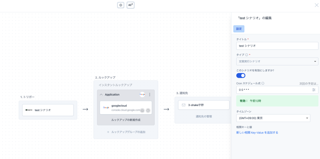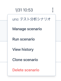 待っていてもいいのですが、今すぐに実行したいので、シナリオ一覧から即時実行を行います。