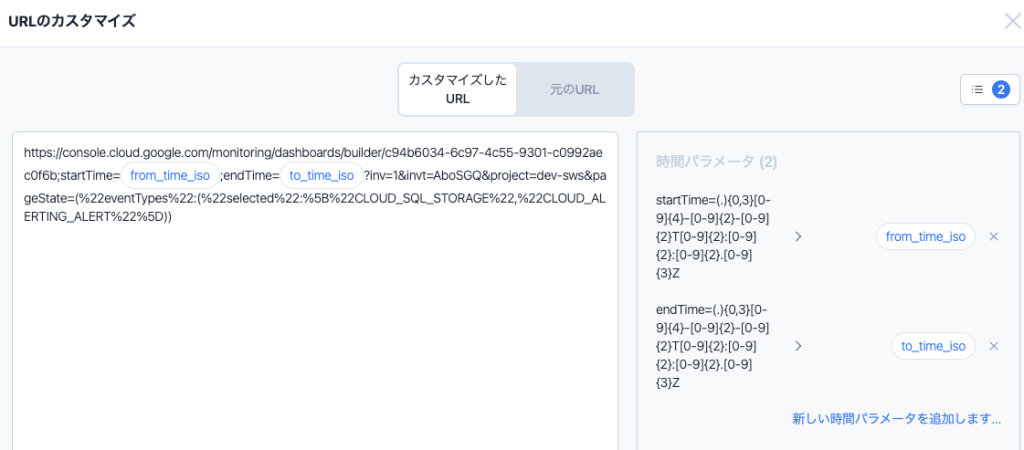 URLのtimestamp部分を変数として定義することで、後で設定するシナリオの部分で任意の日時のスクリーンショットを撮って持ってきてくれるとのことです。