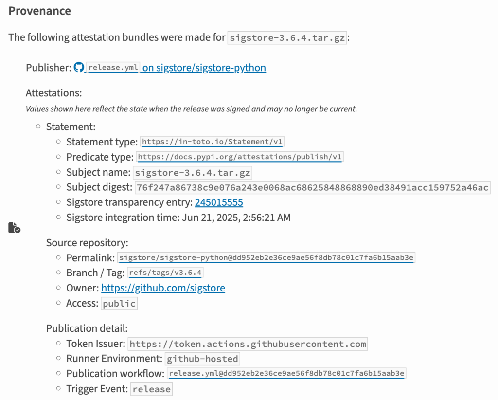 https://www.python.org/downloads/metadata/sigstore/ - [6] PyPI Blogs, PyPI now supports digital attestations