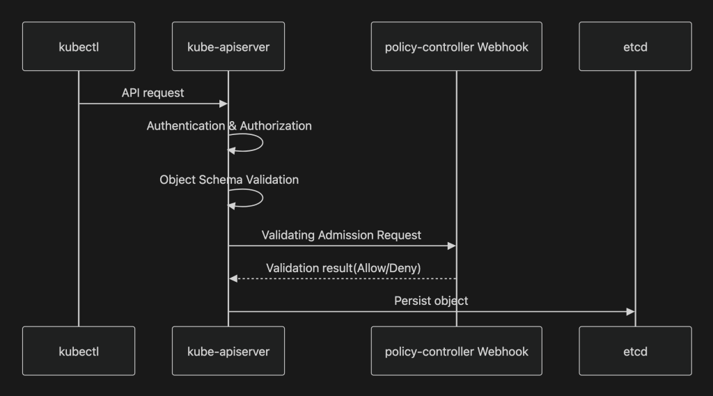 Sigstore には、Kubernetesのアドミッションコントローラーとして policy-controller が用意されています。これは、ValidatingAdmissionWebhook を利用して動作し、Podの作成や更新時に cosign verify や cosign verify-attestation を実行し、その結果に基づいてリソースの許可/拒否を判断します。
