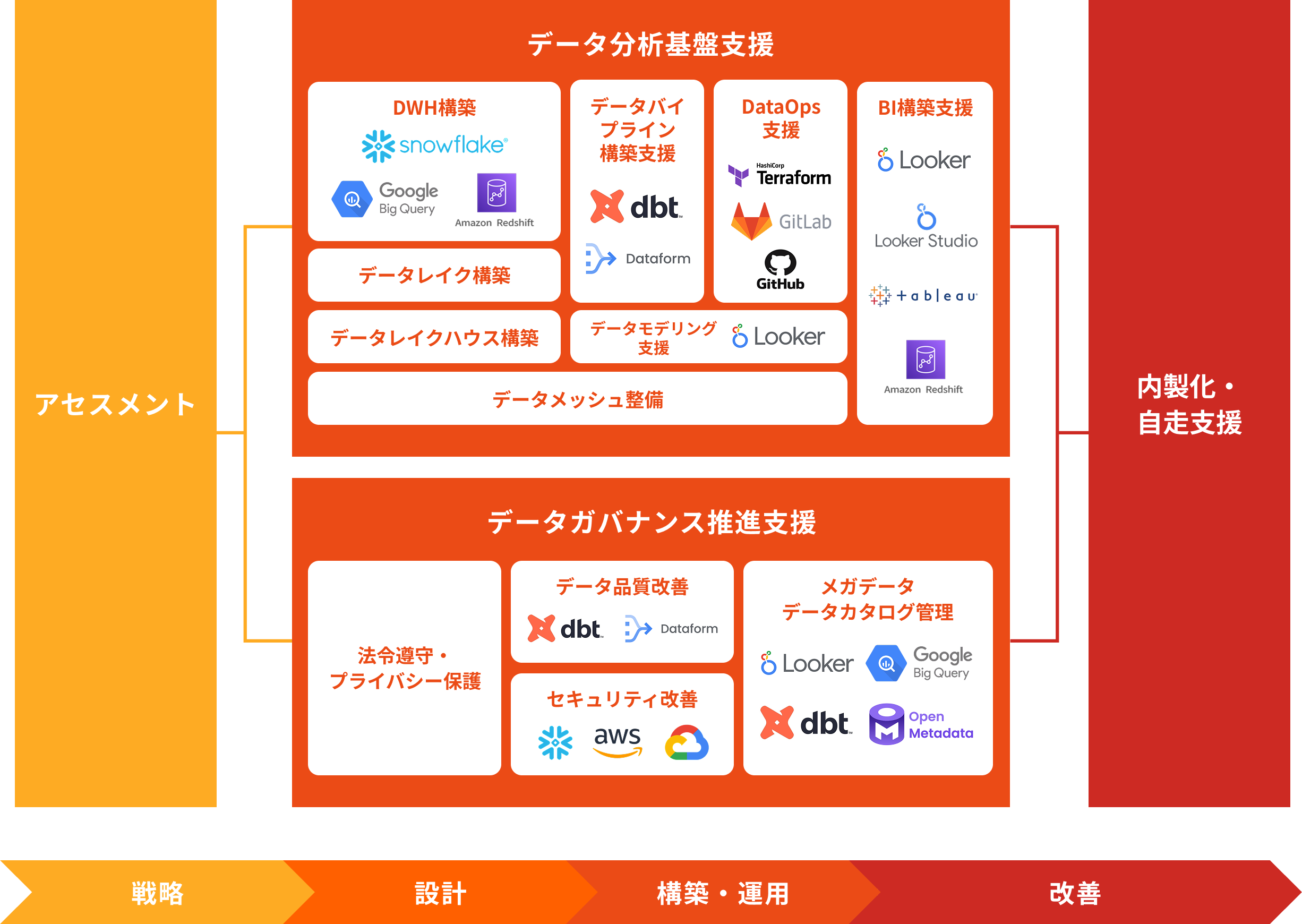 技術スキル向上支援まで包括的にサポートし、データドリブンな組織の実現を支援します。