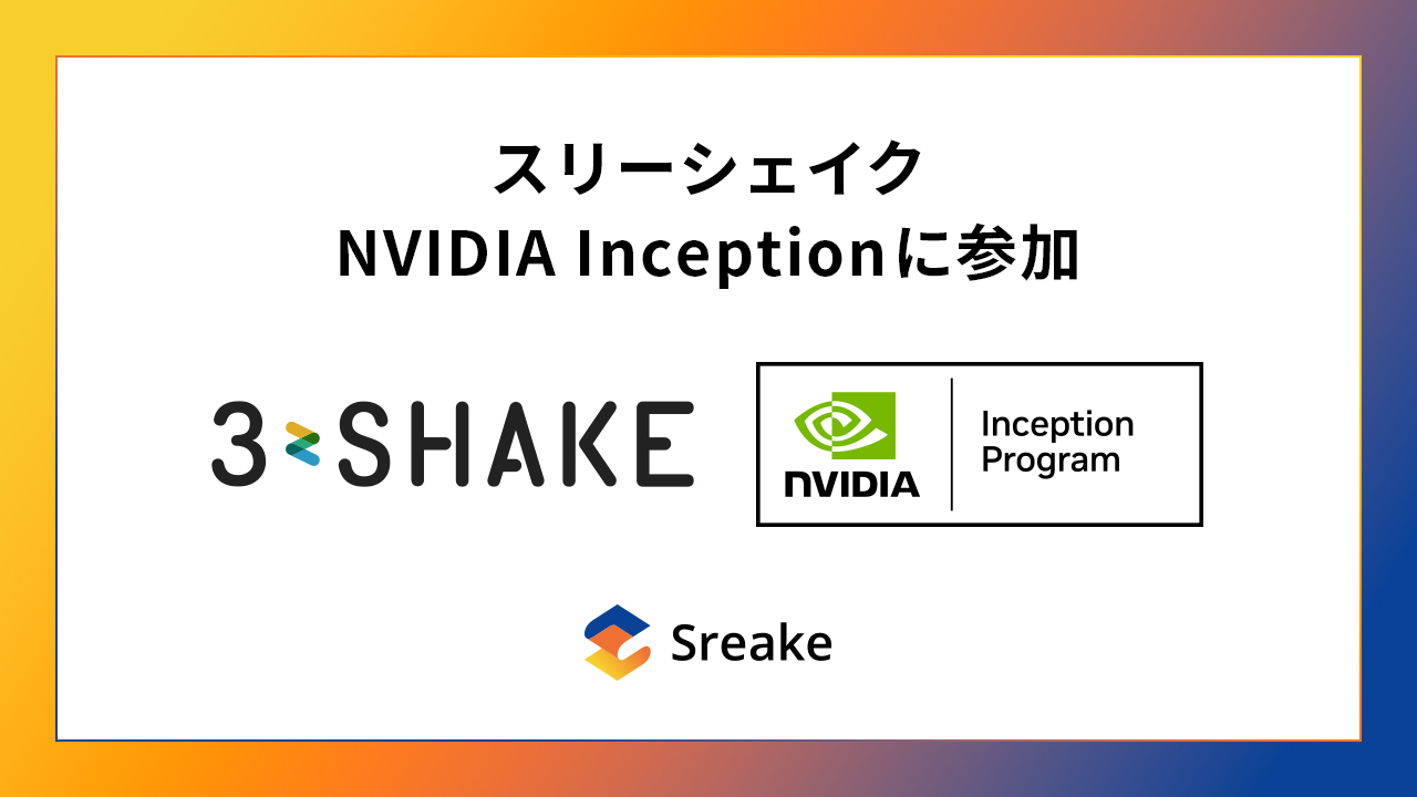 株式会社スリーシェイク(本社:東京都新宿区、代表取締役社長:吉田 拓真、以下スリーシェイク)は、テクノロジーの進歩によって業界に革命を起こすスタートアップ企業を育成するプログラムであるNVIDIA Inceptionに参加しました。